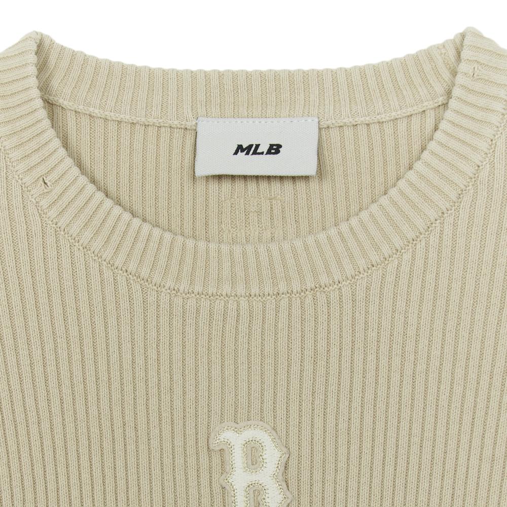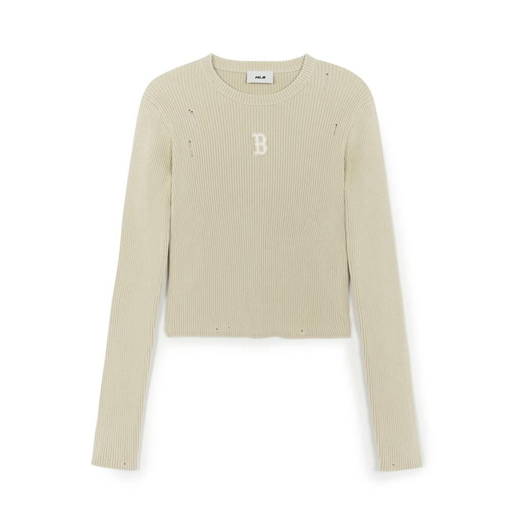 Women's Basic Vintage Washing Ribbed Knit Pullover Boston Red Sox